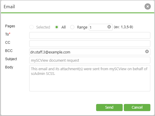 Subject: Pre-populated with "mySCView document request" but can be customized