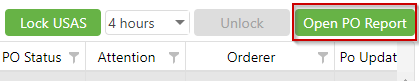 In the upper right corner of the page you will find the “Open PO Report” button.