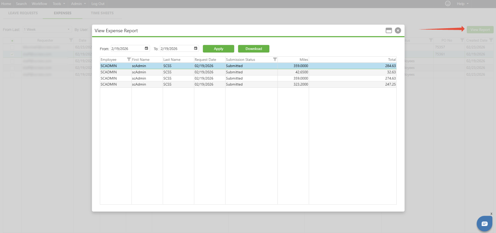 The From and To filters are based on the current date. Once the dates have been selected, clicking Apply will run the report. Once the report has been generated, it can be downloaded to an Excel file via the Download button.