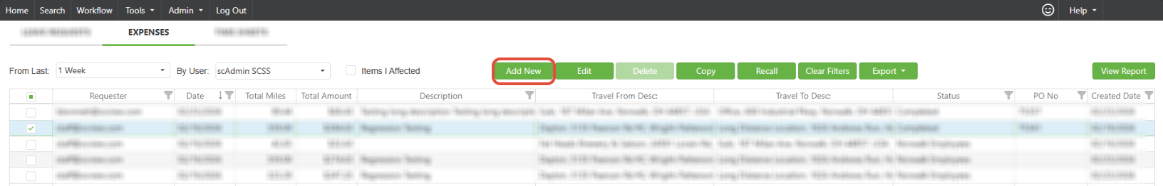 To create a new mileage, simply click the Add New button. This will open the mileage form.