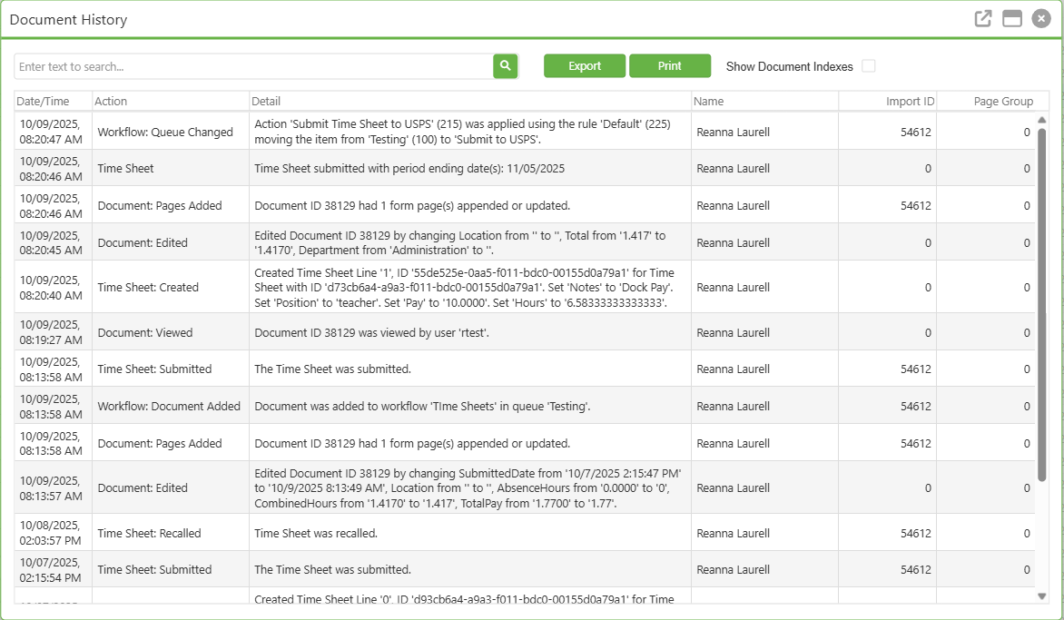 - Unsure of the Current Approval Status: We can look at the Status column under Tools > Time Sheets, or we can right-click and choose Document History to see every step taken so far.