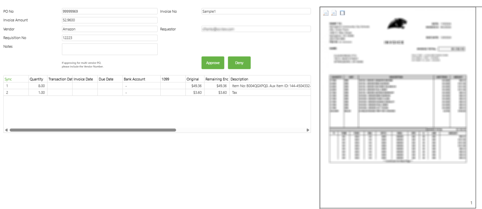- Select either approve or deny for the invoice
