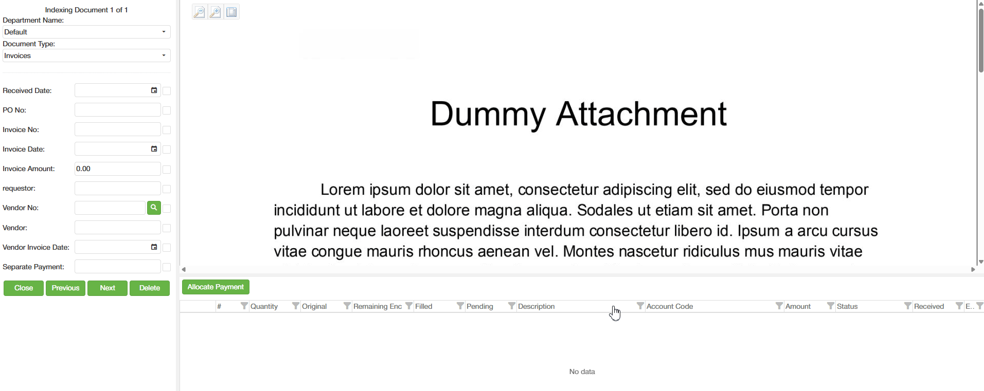 7. Once you have finished indexing all documents, you can either click the "Close" button to return to the Batch Manager where you can submit the batch or click "Next" to be prompted by the Submit Batch popup.