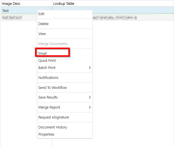 6. After the correct document is selected, right-click on the document title and select "Email"
