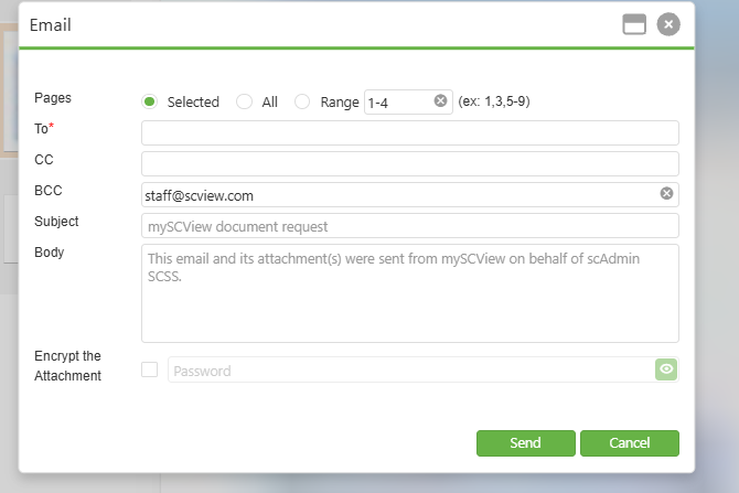 SCView provides a seamless solution for managing and sharing documents electronically by enabling users to directly email documents from within the system. With enhanced security features, users can now encrypt attachments to ensure sensitive documents remain protected during transmission. This functionality is crucial for efficient communication and secure distribution of necessary documents to relevant parties.