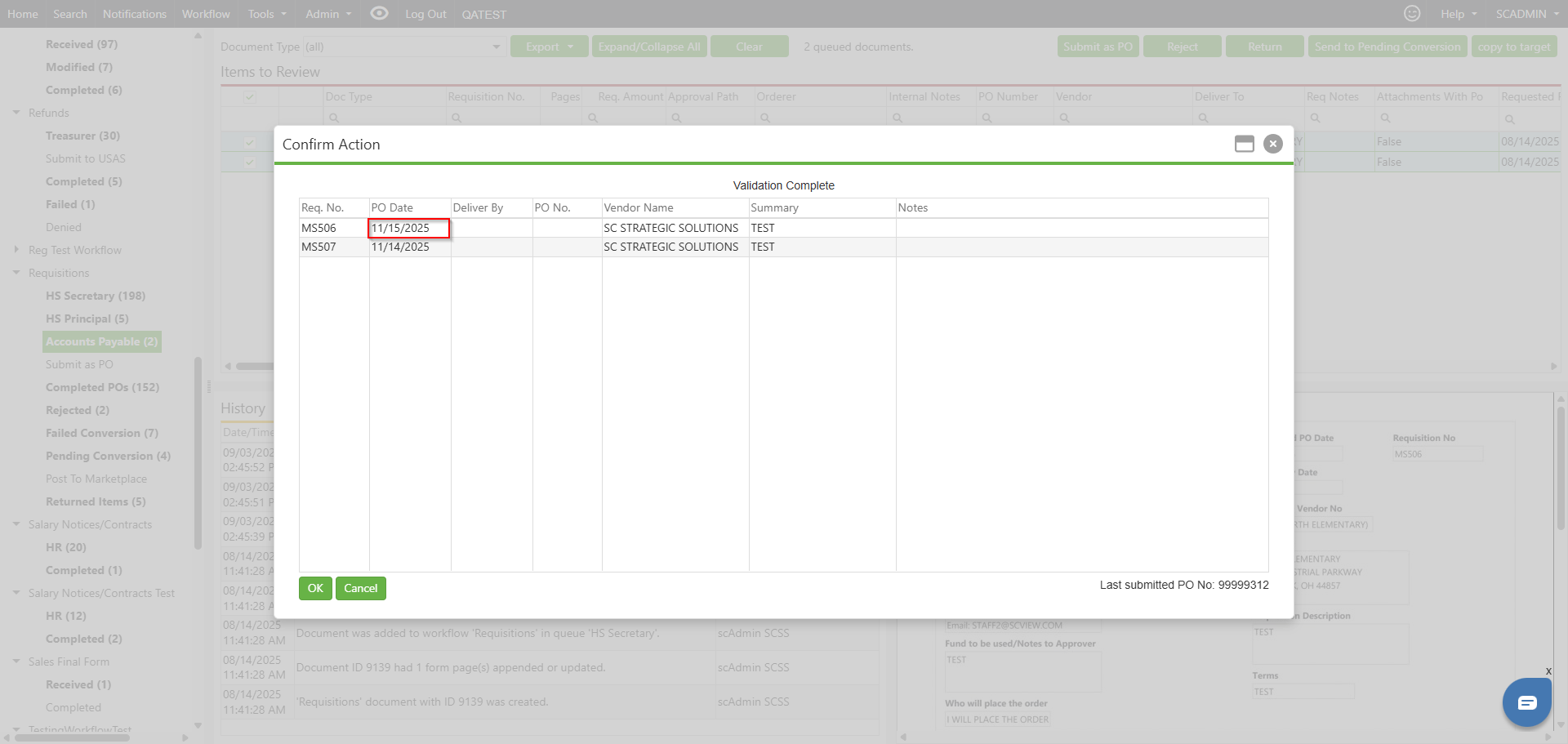 When submitting a requisition as a purchase order (PO) or invoice to USAS, users are prompted with a Confirm Action screen to verify details. Occasionally, users find that the PO Date is incorrect for multiple requisitions. Manually updating each PO Date one at a time is inefficient and increases the risk of mistakes, especially during high-volume periods.