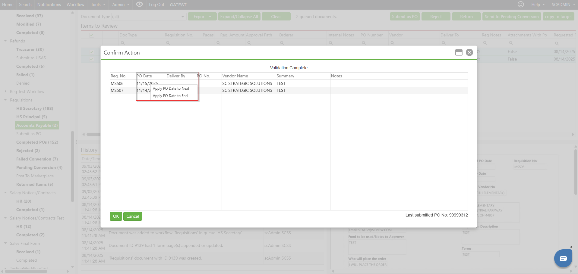 USAS provides a context menu feature that allows users to quickly change the PO Date for multiple requisitions at once. This guide walks you through the process of updating PO Dates in bulk using the "Apply PO Date to End" option.