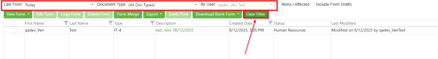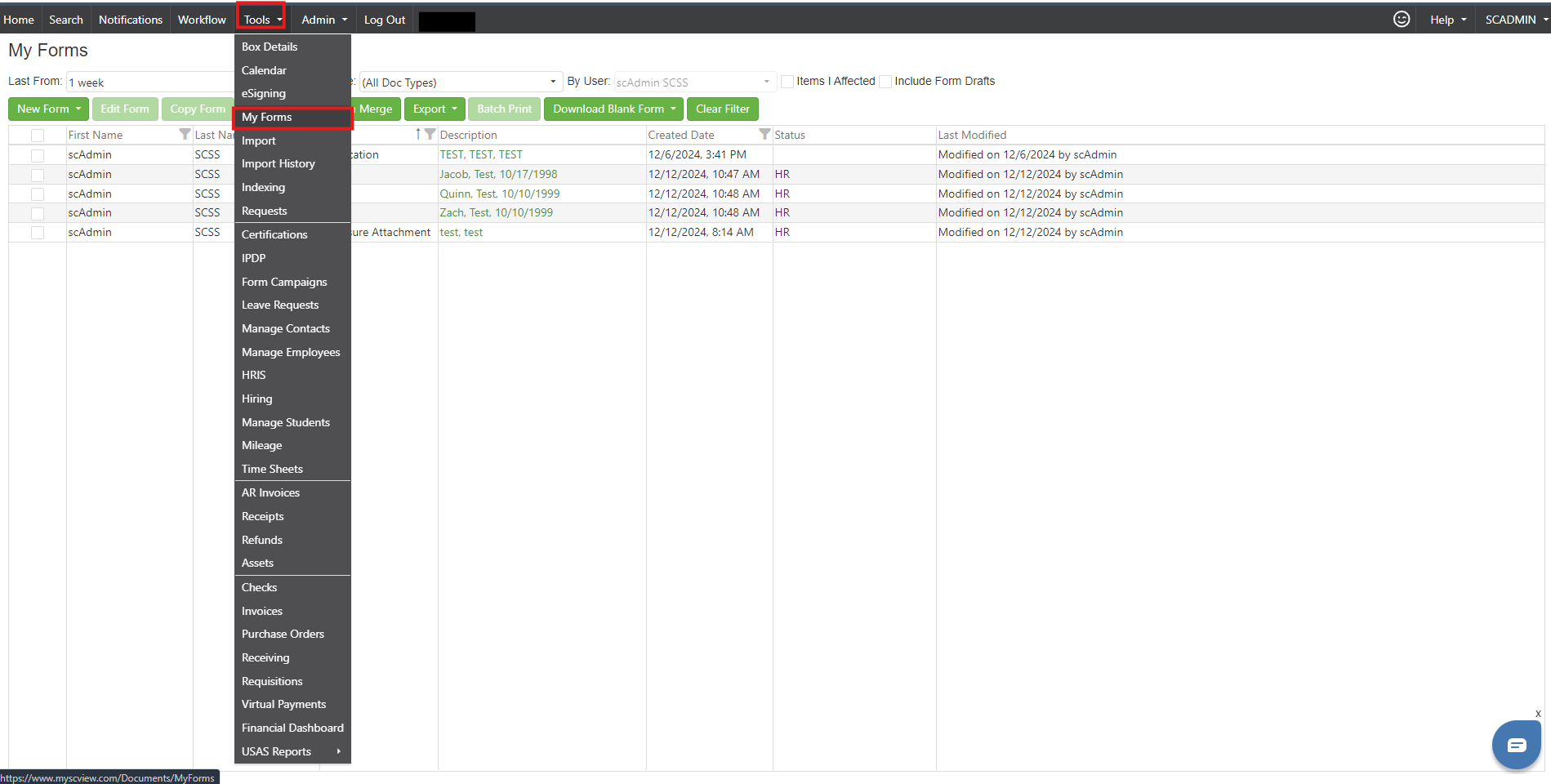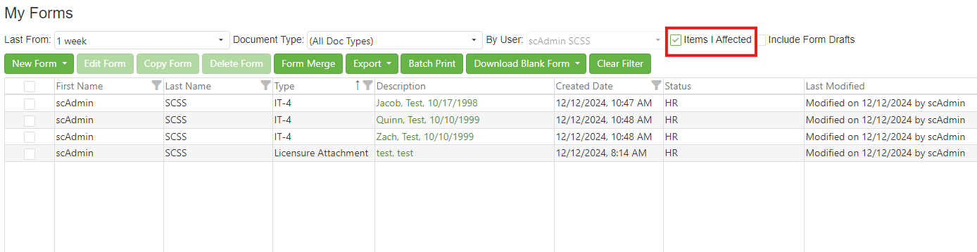 - Keep Track of Approved Items: If you are an approver, ensure the Items I Affected checkbox is marked to easily find forms you have interacted with.