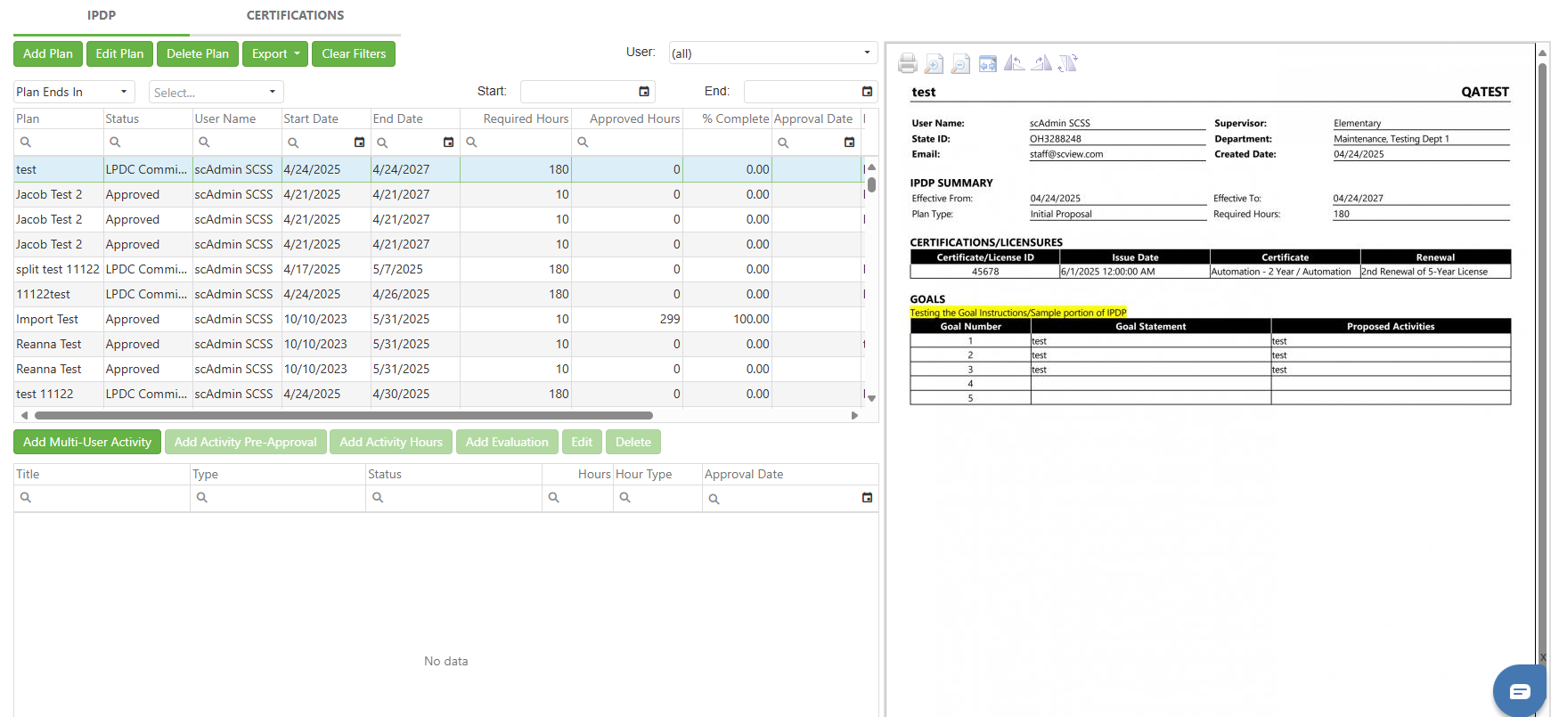 - Documentation and Record Keeping: Utilize the Export functionality to keep offline records of your plans and approvals. Ensure all licensure and certification information is up-to-date and included in your IPDP.