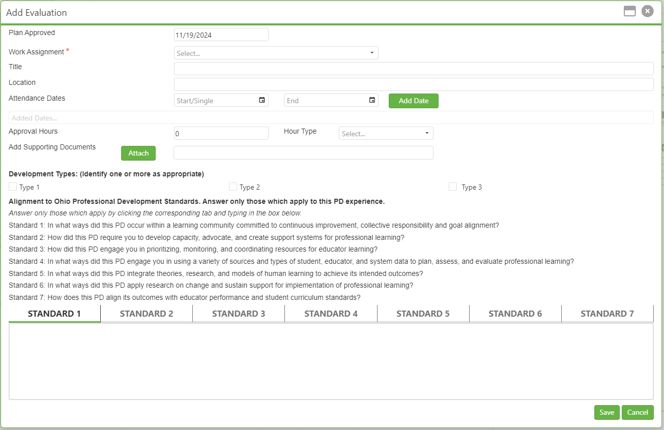 - Verify IPDP Plan Approval: Before adding an evaluation, ensure that your IPDP plan has been approved. Look for the Add Evaluation button to be green, indicating plan approval.