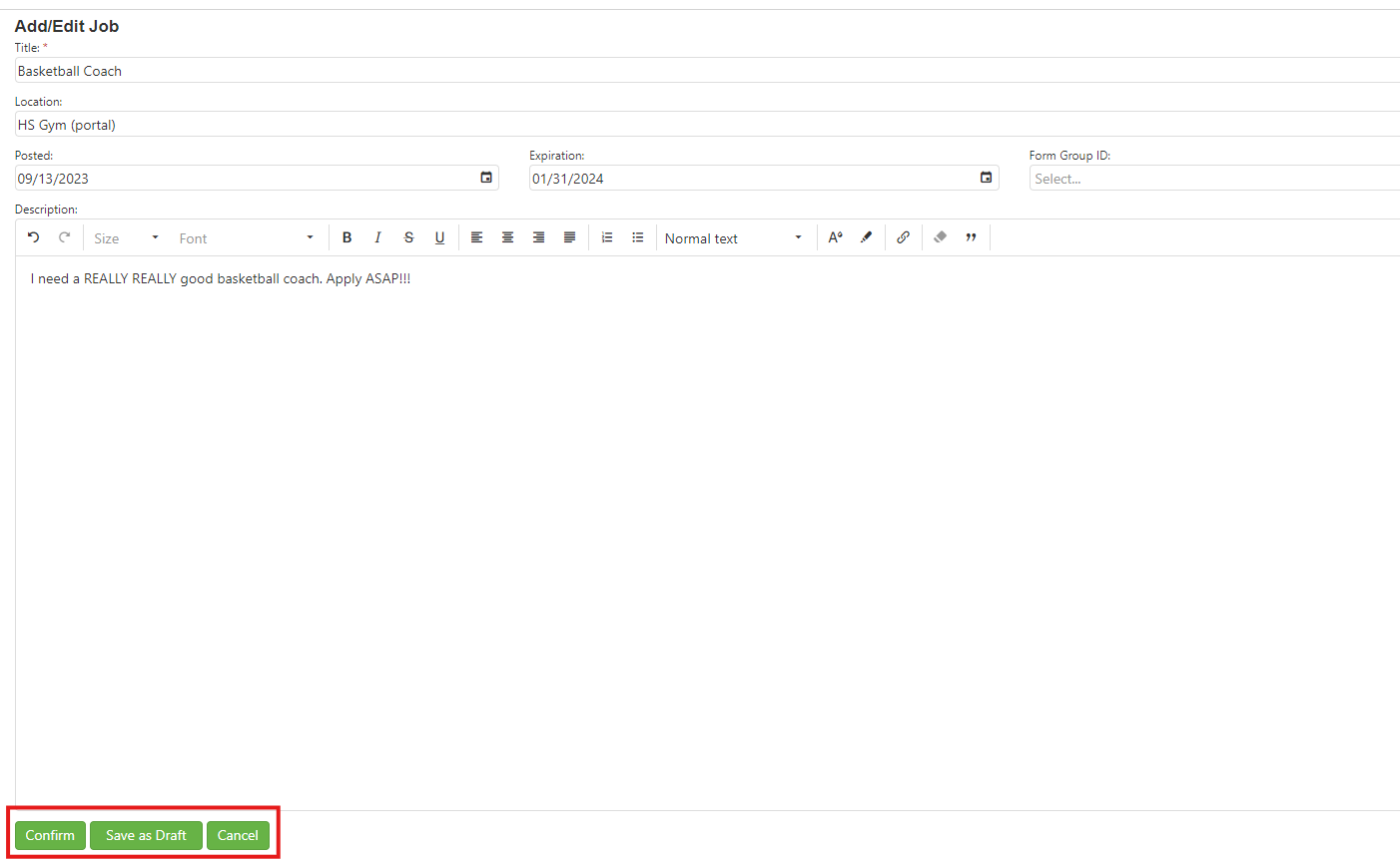 Click the Save as Draft button to save your job posting with whatever information you have entered. The system will: