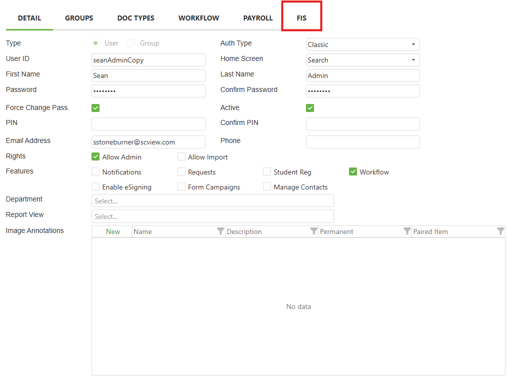 NOTE: When adding an ExtName to users in SCView, the user must have the 'USAS_RO' permission enabled. Be advised, if the user also has 'Allow Negative Budget' enabled, this will override the SCView user permission 'Allow Over Budget' on the FIS tab. This will allow users to submit overbudget requisitions despite not having the permission enabled in SCView.