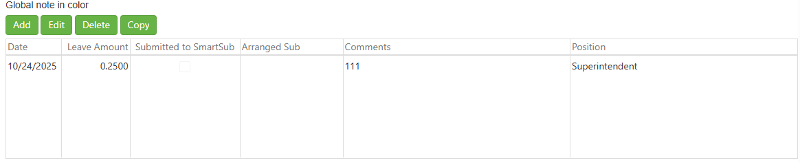 Comment - When SmartSub is enabled, a comment is required in the comment field, even if no substitute is needed for that particular Leave opening.