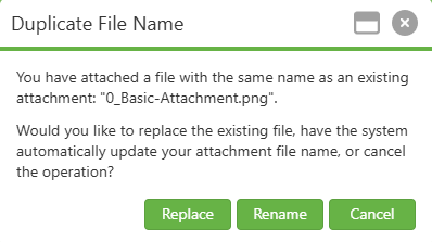 - Uploaded file with same name as existing attachment: Rename the new file before uploading to keep both attachments