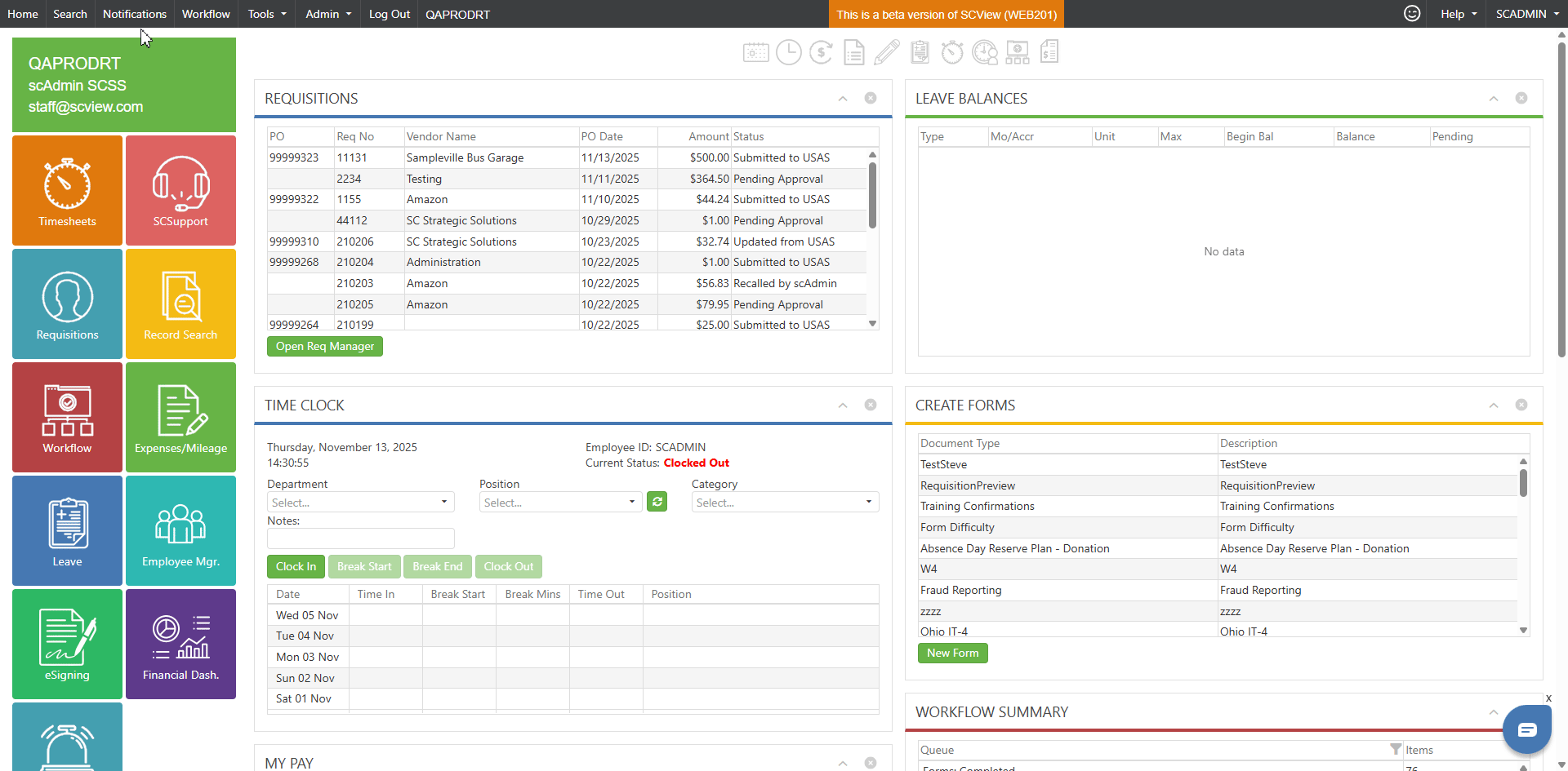 SCView's Auditing page provides a comprehensive solution by automatically logging all system activities with detailed information about each action. The system captures user information, timestamps, action details, and related document information, while providing role-based visibility and robust filtering capabilities for efficient audit trail management.