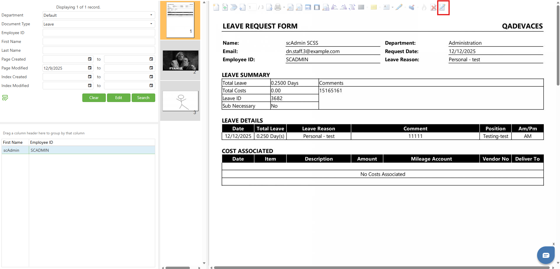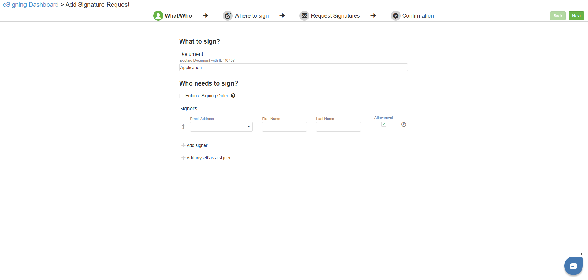 Now that we have isolated the document that needs a signature added, sending it to eSigning is as easy as pressing a button. Specifically, it's the paper-and-pencil button at the far right end of the icon buttons present at the top of the main document image. Simply press that button, and the eSigning wizard will launch in another tab with your selected document as the target file.