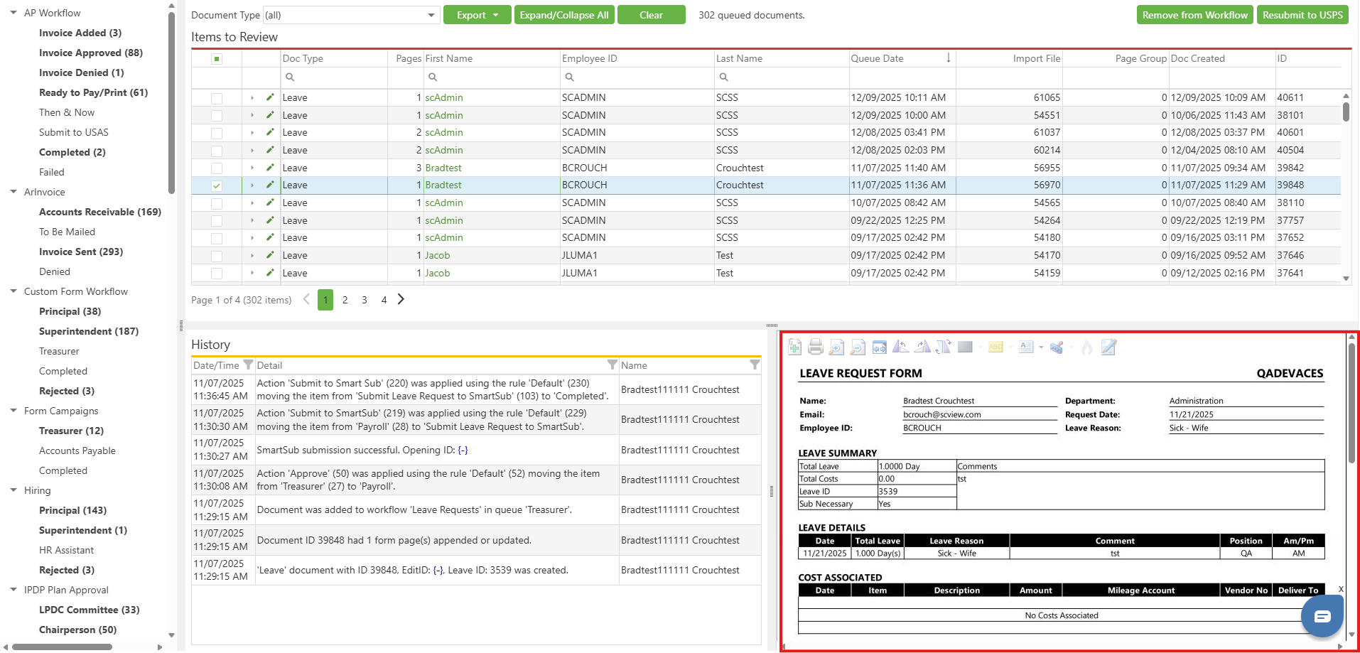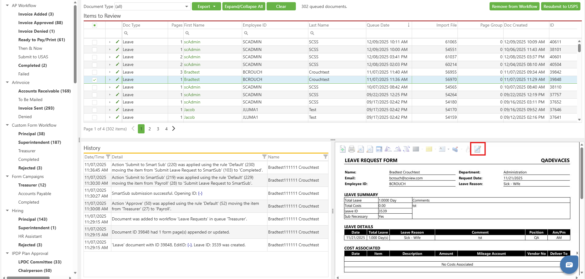 Select the Workflow queue in which you are interested and look through the documents found in that queue for your target document. For specifics on basic interactions and how to operate Workflows, see Workflow: Overview.