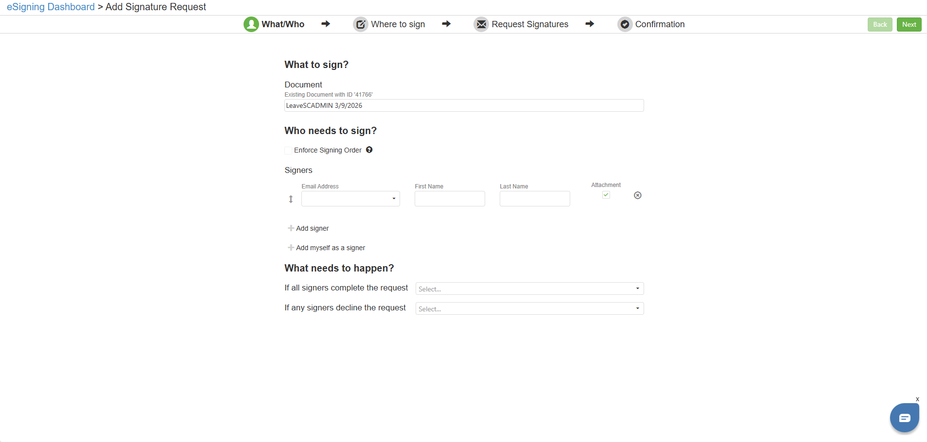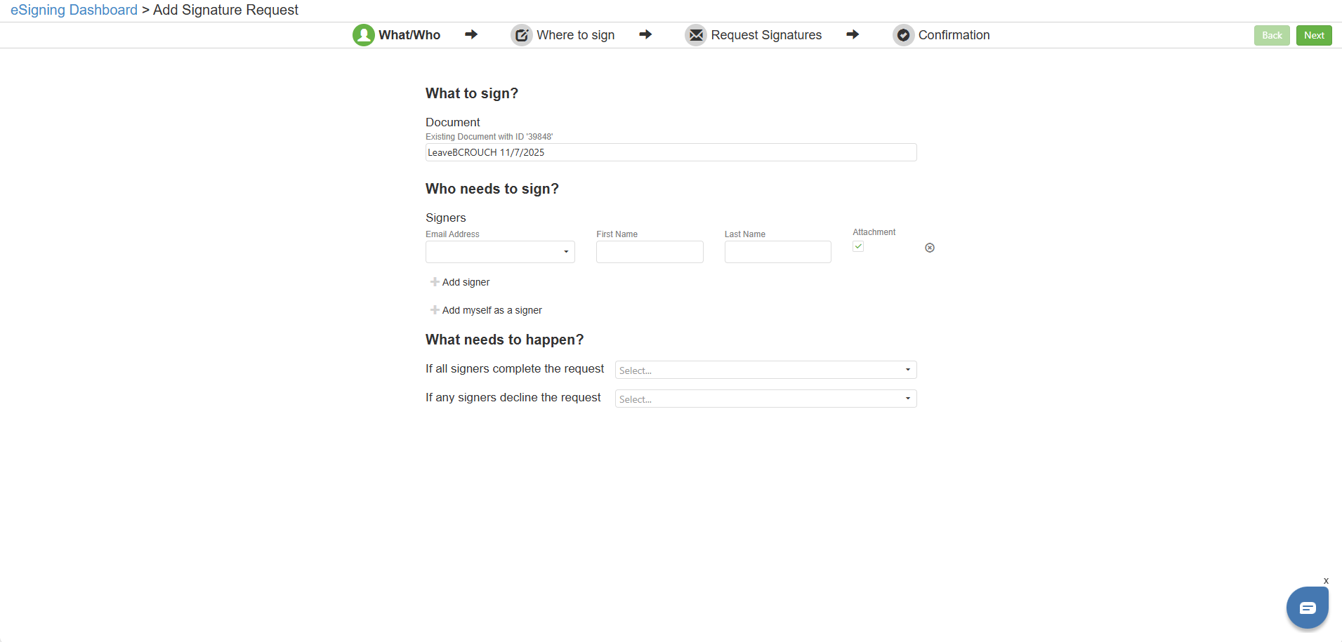 Step 3: Fill out the eSigning Request