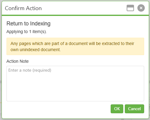 This setting allows the returning party to include notes with the document they are returning to indexing. Notes can be optional or required per this configuration.
