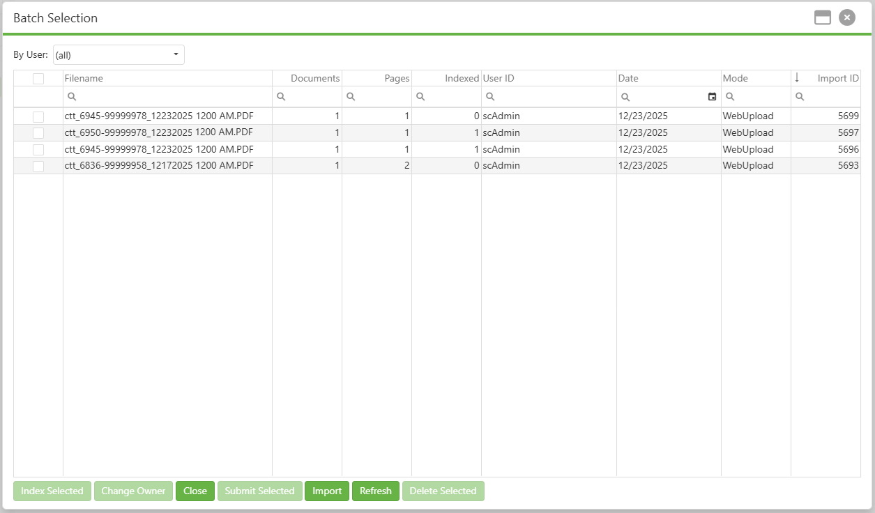 In the example above using invoices in the AP workflow, the batch generated from this process will have the PO# as well as a date stamp.