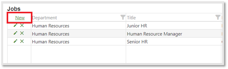 Step 2: Click on the New hyperlink which is on the Job Page’s Grid as illustrated below by the red outlined box.