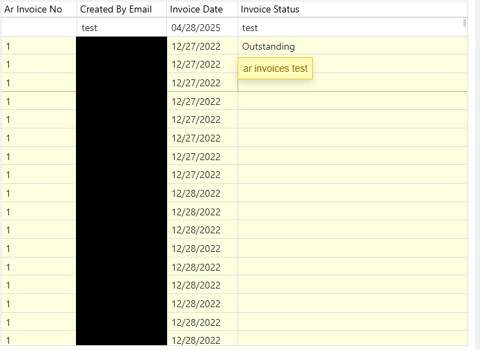 Similarly, a row that is highlighted yellow designates a record containing Notes. Simply hover over the record with your mouse for the note content.
