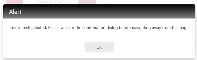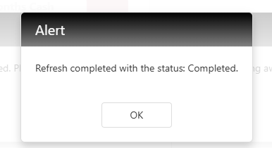 Upon hitting OK, you will need to stay on this page until you receive the alert popup telling you if the status of the refresh completed or failed.