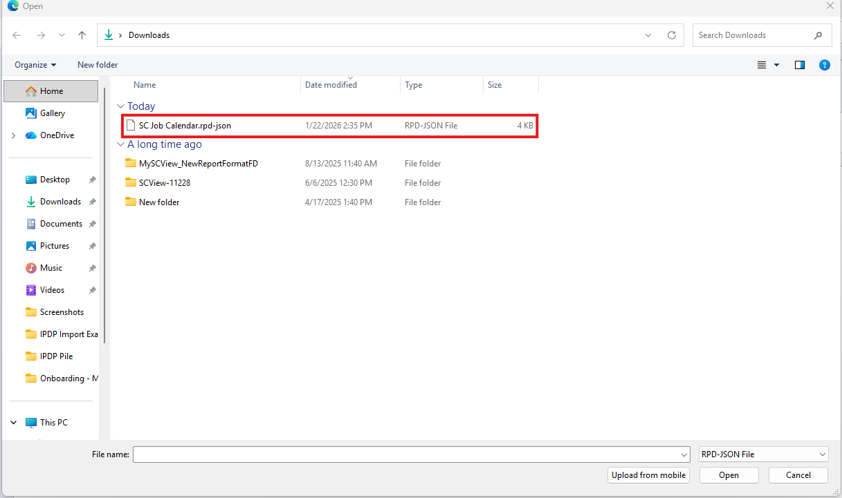 Step 3: Import the SC Job Calendar Report